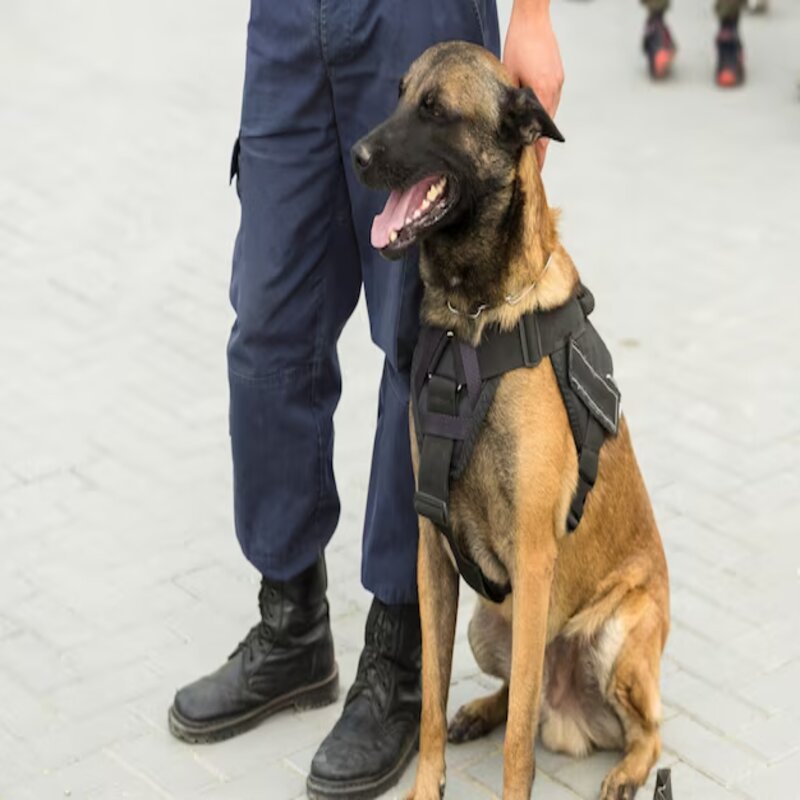 Nous intervenons sur des chantiers BTP étendus, des entrepôts logistiques, des événements à risque, et tout site nécessitant une présence dissuasive renforcée. Le binôme est également formé à la détection olfactive sur demande spécifique.
